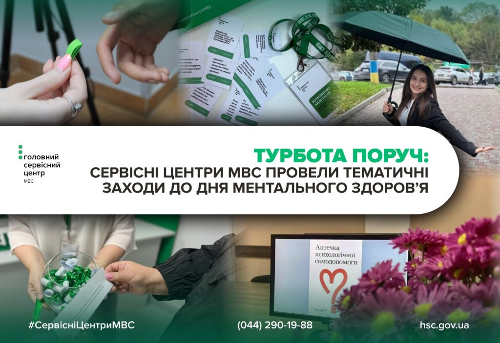10 жовтня, у Всесвітній день ментального здоров’я, сервісні центри МВС по всій Україні долучилися до Всеукраїнської програми ментального здоров’я «Ти як?», ініційованої першою леді України Оленою Зеленською, та підтримали створення Національної галереї сили теплих дій – «Дотики підтримки».