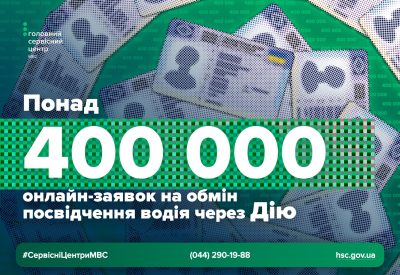 Українці дедалі частіше обирають цифровий формат отримання послуг. Показовий результат – опрацьовано вже 400 тисяч заявок на обмін посвідчень водія, поданих через застосунок «Дія» і доставлених власникам Укрпоштою. Це приклад того, як державні послуги стають зручними й доступними: оформити заявку можна у кілька кліків – з дому, з роботи чи навіть у дорозі. Водночас кожне звернення в електронному форматі опрацьовують фахівці сервісних центрів МВС. Тобто за цифровим сервісом стоїть реальна команда, яка відповідає за правильність та якість надання послуги. Нагадуємо, обмін посвідчення водія необхідний у разі: закінчення строку дії документа; пошкодження бланка або нечитабельності написів; зміни персональних даних (прізвища, імені, по батькові, статі); бажання власника отримати сучасний зразок посвідчення. Відновлення потрібне, якщо водійський документ втрачено, знищено або викрадено. На період воєнного стану медична довідка для обміну чи відновлення посвідчення водія не є обов’язковою. Також графа щодо групи крові може залишатися незаповненою – це не впливає на чинність документа.Через це під час оформлення послуги в «Дії» не подається медична довідка про придатність до керування транспортними засобами. Щоб подати заяву в застосунку «Дія», потрібно: у розділі «Водієві» обрати «Заміна посвідчення водія» або скористатися відповідною функцією в цифровому документі; зазначити причину заміни; обрати формат посвідчення – електронне або пластик + електронне; визначити спосіб доставки: у будь-якому ТСЦ МВС, у відділенні Укрпошти чи кур’єром на вказану адресу; перевірити контактні дані; підписати заяву та сплатити послугу. Спостерігаємо стійку тенденцію: громадяни впевнено обирають цифрові рішення. Наше завдання – забезпечити однаково високий рівень сервісу як онлайн, так і під час особистого звернення в сервісні центри МВС. Консультацію щодо послуг сервісних центрів МВС можна отримати за телефоном (044) 290-19-88 або на сторінках Головного сервісного центру МВС в Фейсбук та Інстаграм. Відповіді на найпоширеніші питання та корисну інформацію черпайте на сайті.